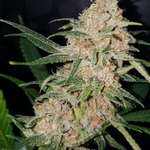 Gelato is an indica-dominant hybrid which is a cross of a a fruity, indica Sunset Sherbet and Thin Mint Cookies. This strain has a very sweet aroma when it’s in bloom and has a sweet sherbet flavour, with blueberry and orange hints. This is a potent strain with THC as high as 25%, so recommended for an evening smoke or a lazy day