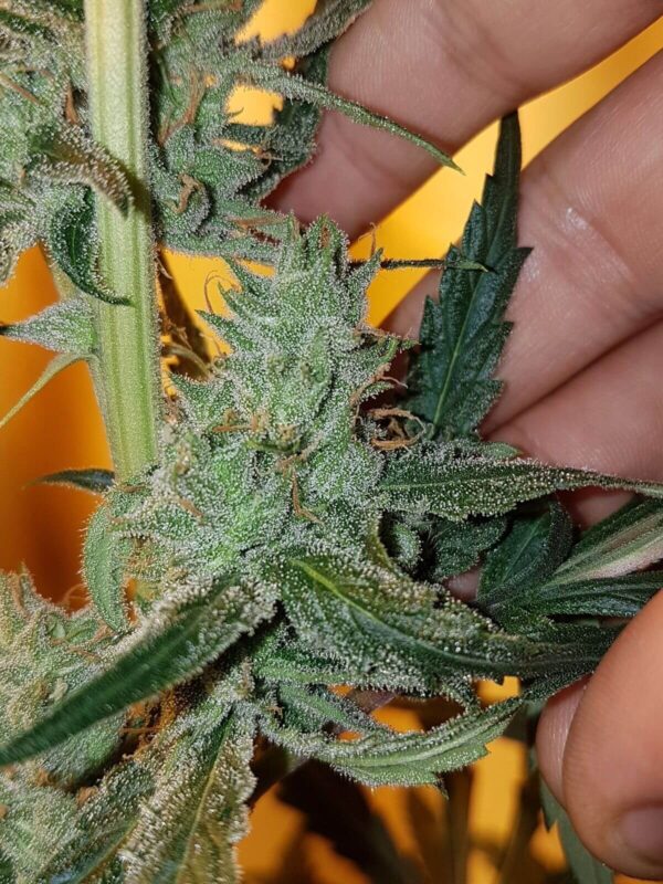 The Old School Hazy Jones throws out huge yielders getting 5 zips (ounces) a plant no problem with some early topping to create a nice few heads and you experienced growers could pull 9 zips a plant no problem with your magical training/topping skillz. Potency leans more to the sativa side perfect for any energetic activities but don’t over do it because this ain’t no daytime smoke and will have you really flying high with no ceiling if your not a heavy weight.